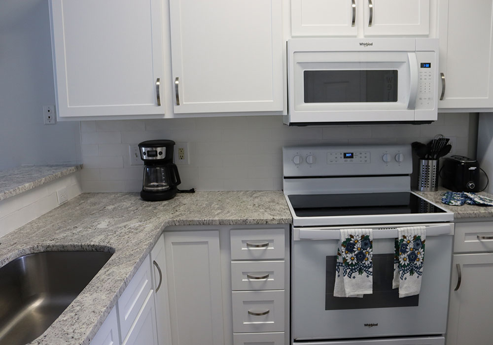 - Fully equipped kitchen with stove, oven, dishwasher, microwave, and small appliances