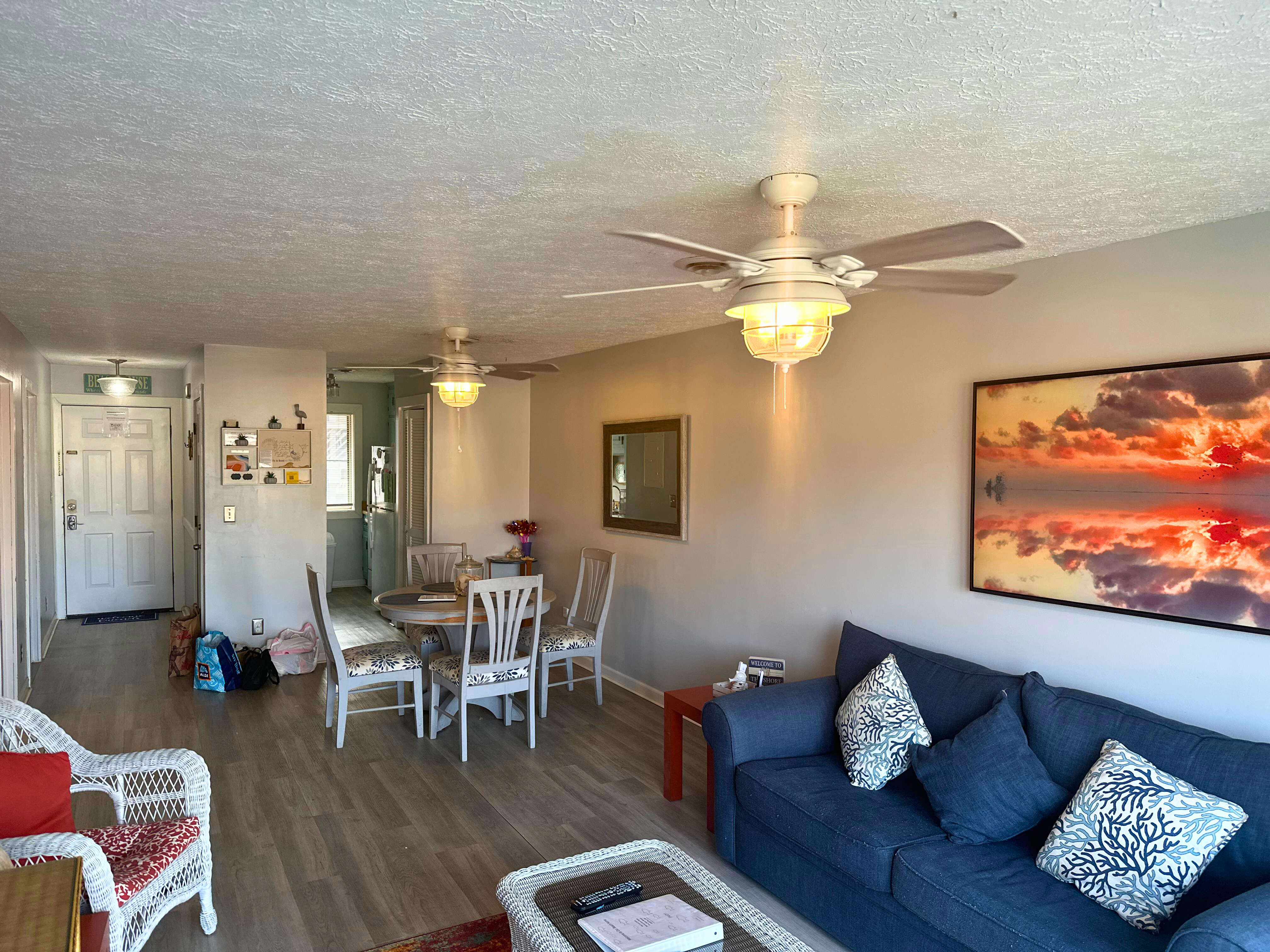 - Total of 4 beds: 1 queen, 2 twin, and 1 sofa bed in the living room