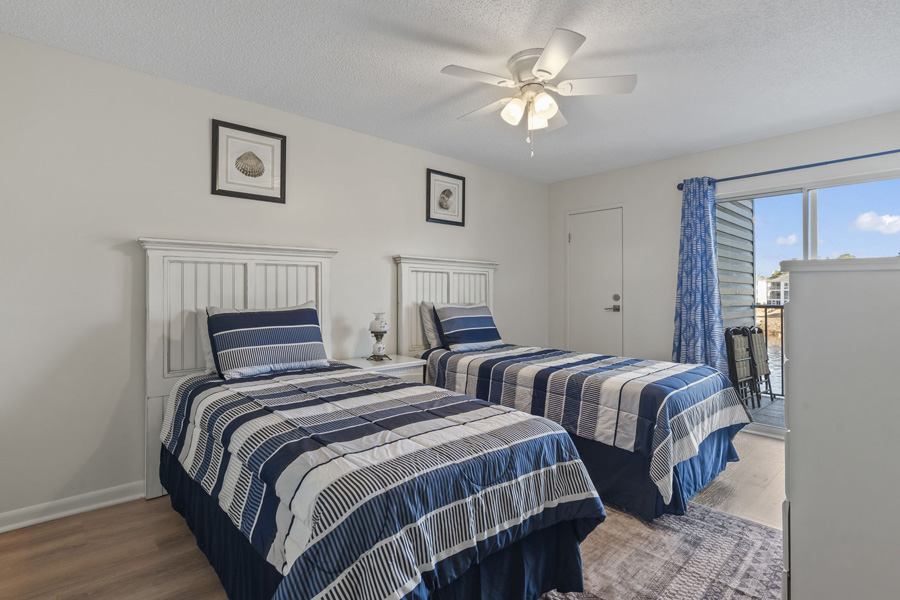 Enjoy a peaceful, centrally located stay at this beautiful waterfront condo overlooking the scenic Intracoastal Waterway. Take in incredible sunsets from the private balcony, fish right from the dock, or relax poolside while watching boats glide by. Sliding glass doors from the living room and both bedrooms open to a large balcony, bringing the waterfront views inside.